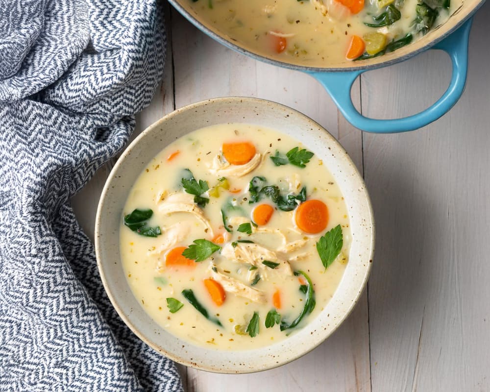 A rainy-day classic with a fresh spring upgrade, this Creamy Lemon Chicken Soup with Spinach is both comforting and bright. This recipe comes from A Spicy Perspective, has a total cook time of 35 minutes, and serves 8.