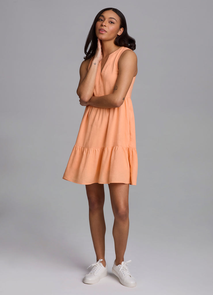 Our Laidback Linen collection blends casual resort wear into your everyday style. The wear-anywhere Laidback Linen Popover Dress features a layered linen blend fabric that combines with a relaxed fit, flattering notch neckline and tiered skirt for versatile wear at the beach, airport or brunch with friends, while full sized side pockets offer convenience and function. With its timeless linen fabric and easy-to-style silhouette, it's a closet staple you'll reach for year after year.