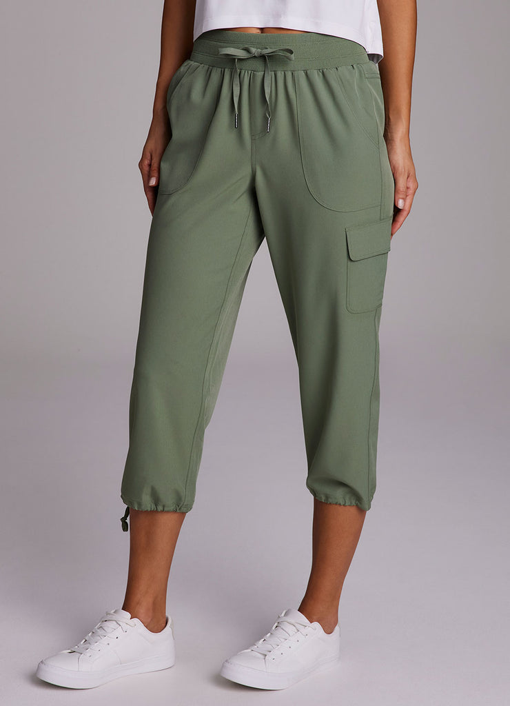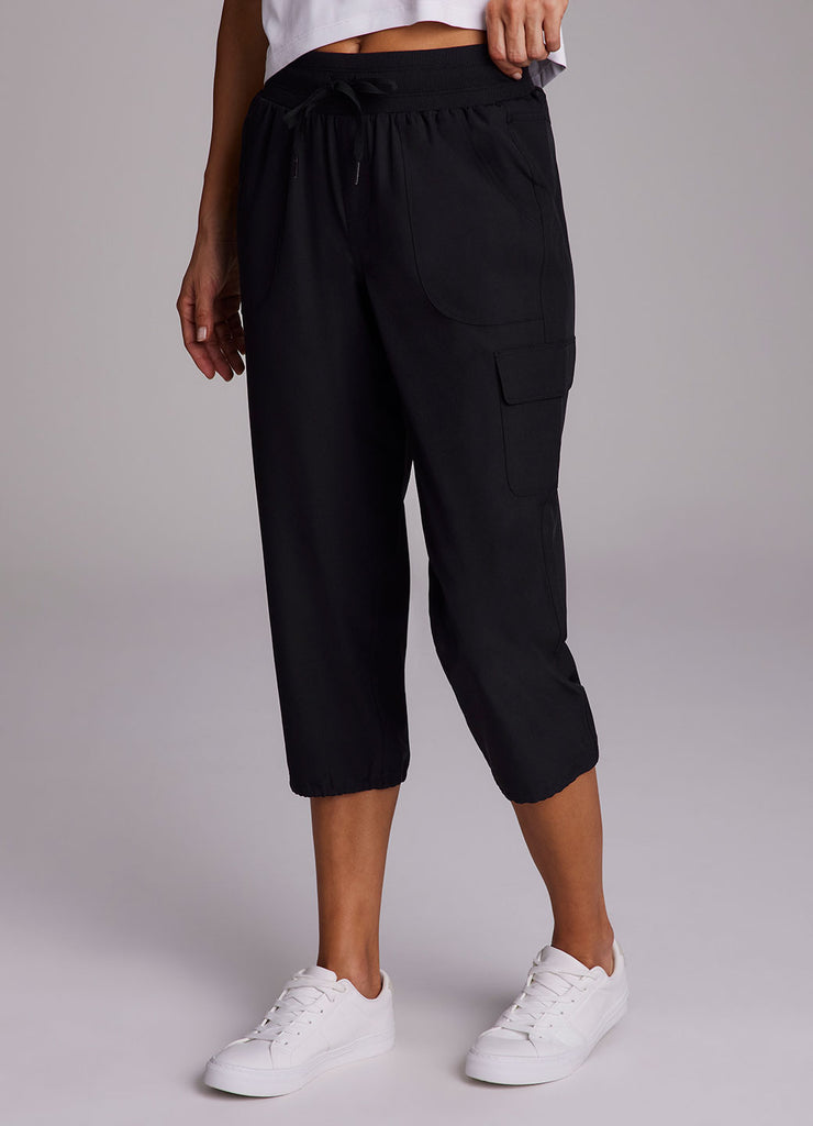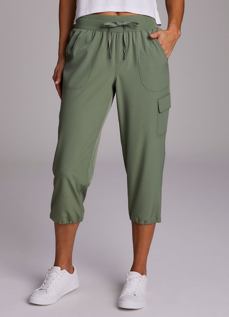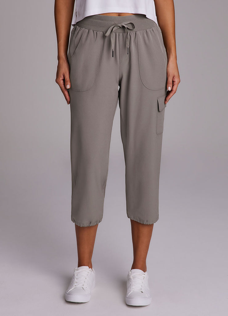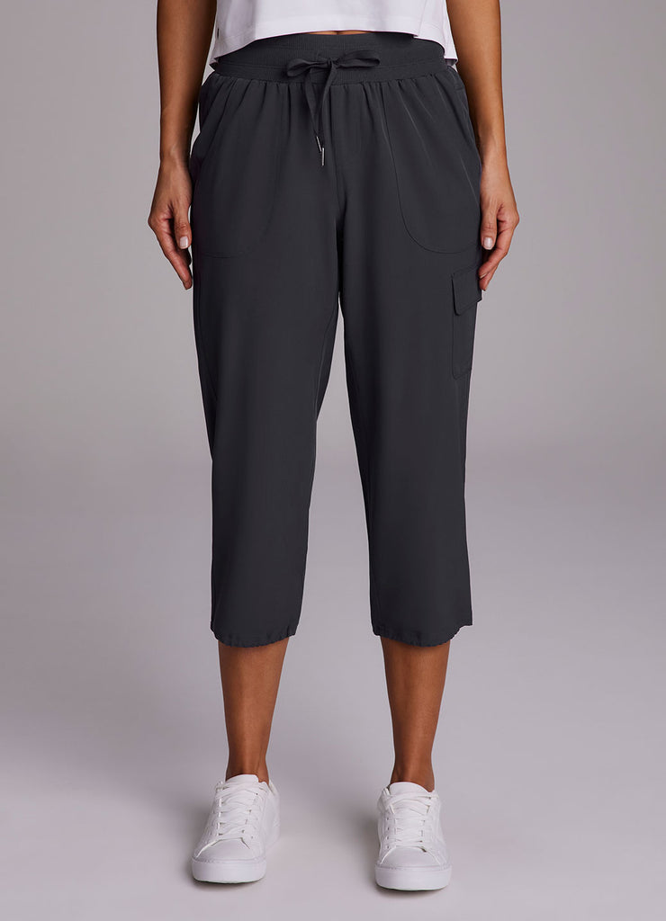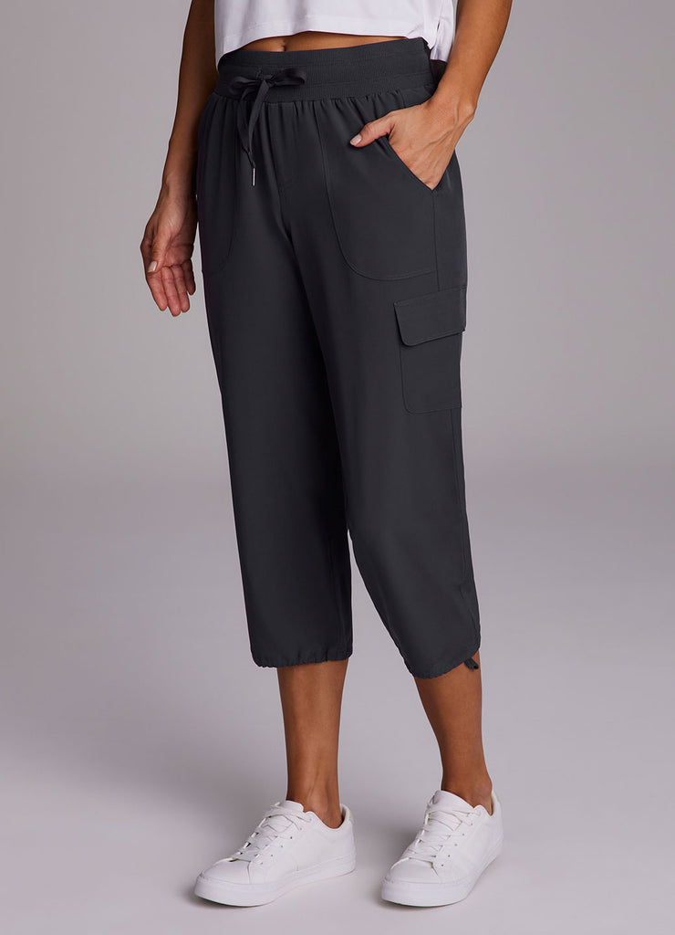The Prime Anywhere Cargo Capri is a relaxed fit lightweight stretch woven pant that is an essential part of an athleisure wardrobe. Lightweight stretch woven fabric allows you to move without restriction, while moisture wicking properties help it to dry quickly to keep you dry and comfortable. Sizable side pockets and additional small cargo pocket provide convenient on-the-go storage, and an elastic waistband and drawstrings at the waist and leg openings allow for a more customized fit. These cargo capri pants are an on-the-go essential. You'll want to wear them everywhere! Available in extended sizes XS-3X. *Please note these capris have a looser, relaxed fit when choosing a size.