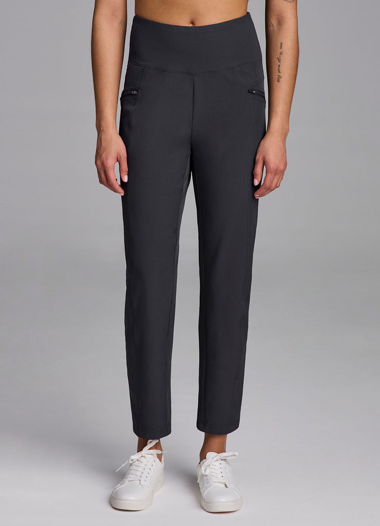 Elevate your athleisure wardrobe with function and style with our Jet Setter Ankle Pant. Lightweight and quick drying stretch woven fabric allows for flexibility, comfort and versatile wear, while secure zipper pockets provide convenient storage. The wide flat-front waistband and high rise design combine with a breathable straight leg design and trendy seaming detail to offer a flattering look and fit.