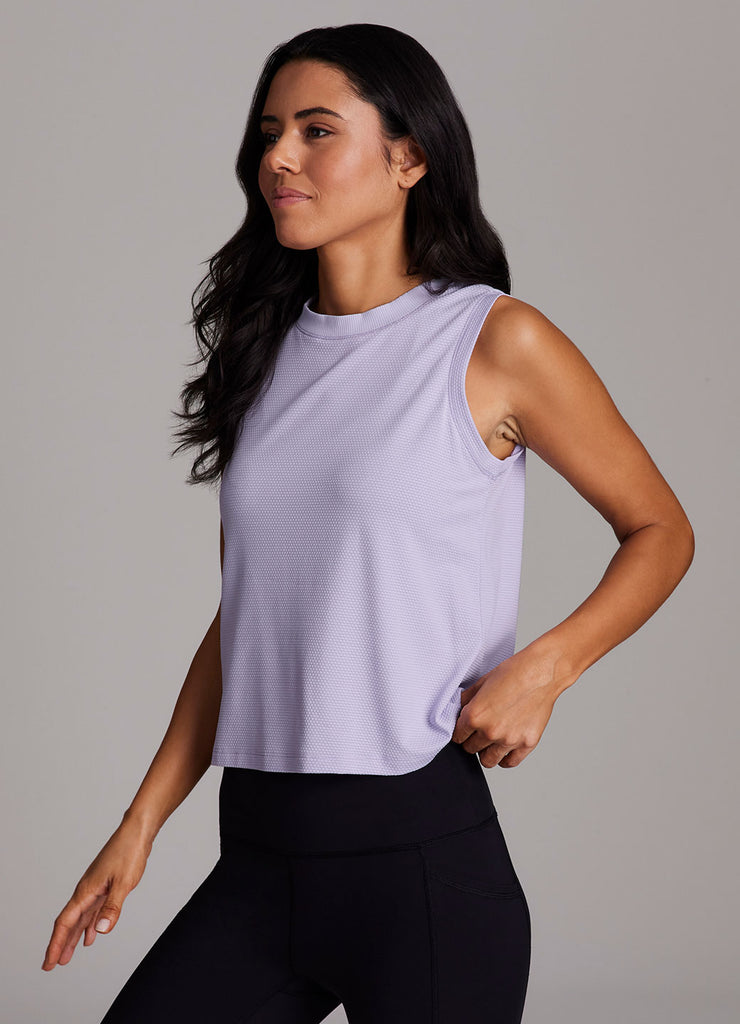 Crafted with premium, textured bubble mesh fabric that combines with a classic crew neckline and easy fit, our Seaside Bubble Tank is an elevated workout top perfect for layering or wearing on its own. Quick drying fabric keeps you comfortable during any activity, while a classic crewneck design and meet and greet length offer versatility for styling.