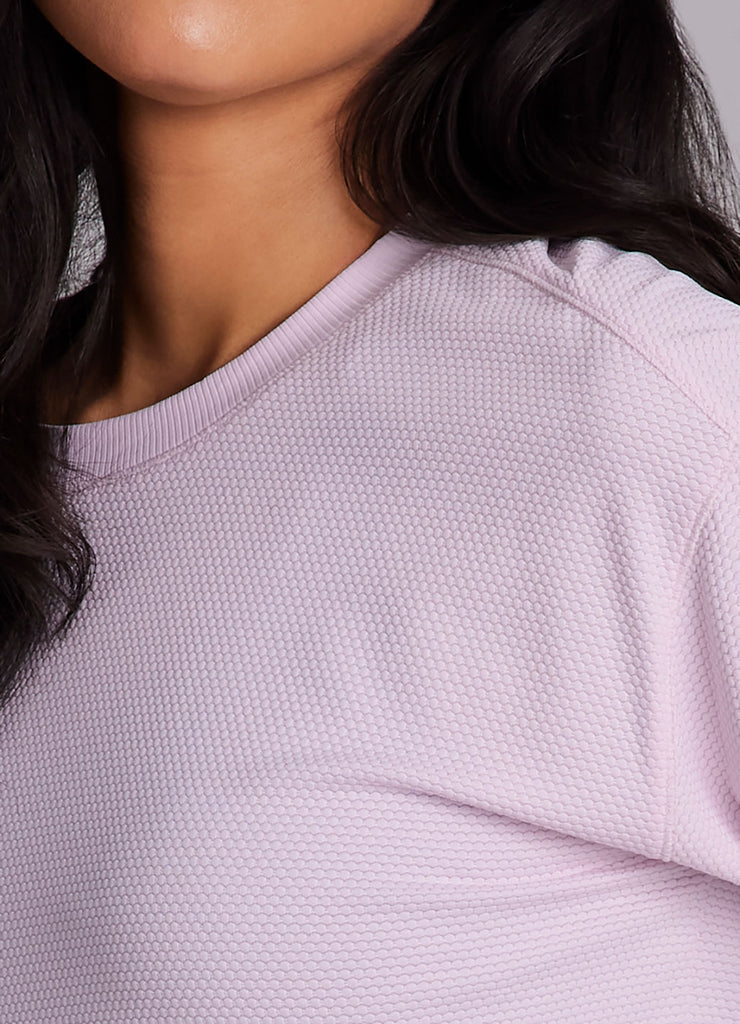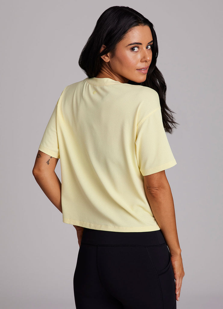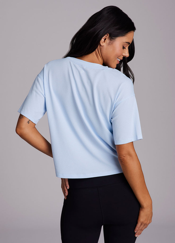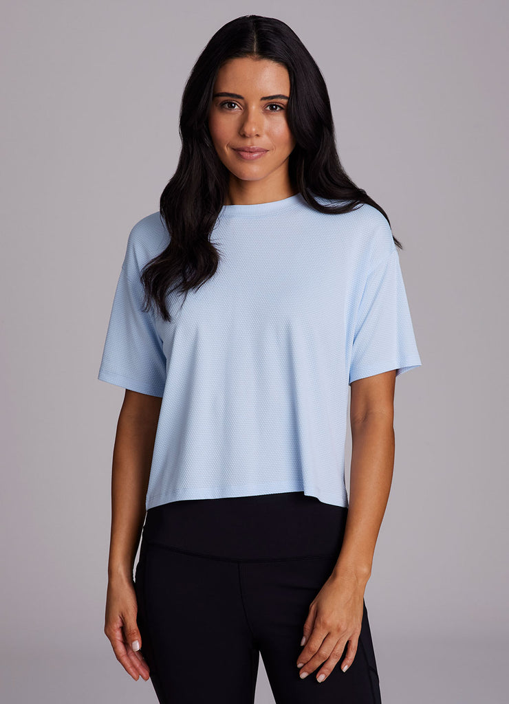 Our Seaside Bubble Tee is a versatile active top perfect for workouts or casual everyday wear. Quick drying bubble mesh fabric combines with a classic crew neckline, easy fit with dropped shoulders and a meet and greet length to perfectly complement your favorite gym legging or pair of jeans.