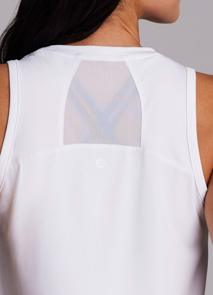 Our On The Run Tank is designed for maximum comfort and performance. Crafted from smooth stretch fabric, this crewneck tank top wicks sweat, dries quickly and features sheer mesh panels for added breathability to help keep you cool as the workout heats up. Plus with a regular length and easy fit, it's perfect to take from studio to street.
