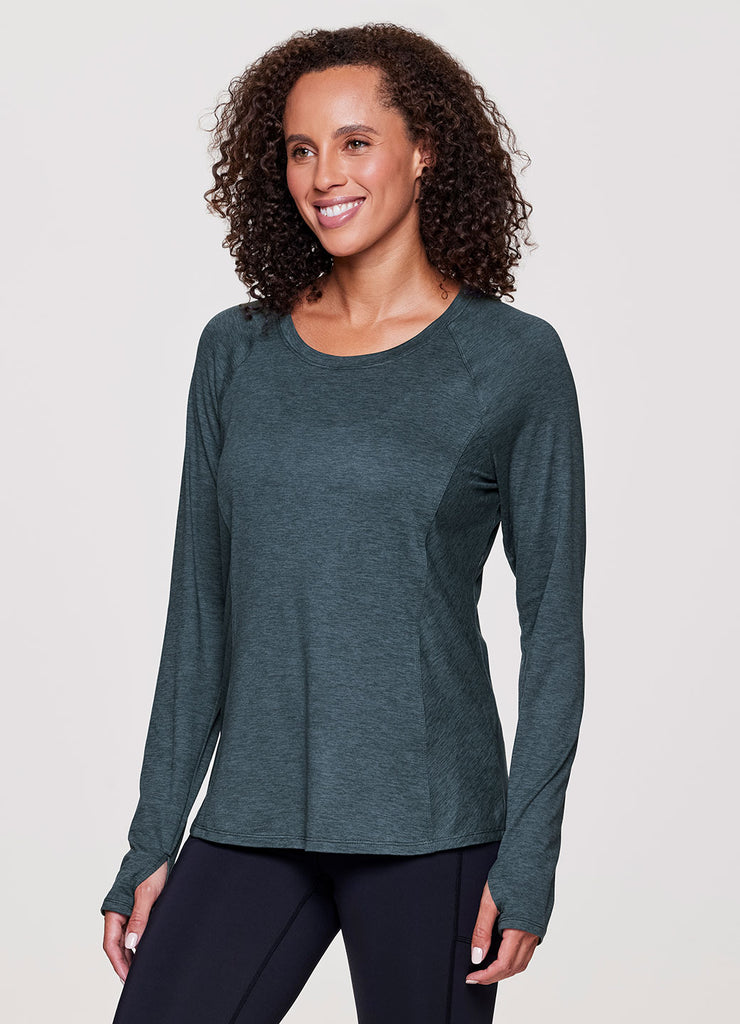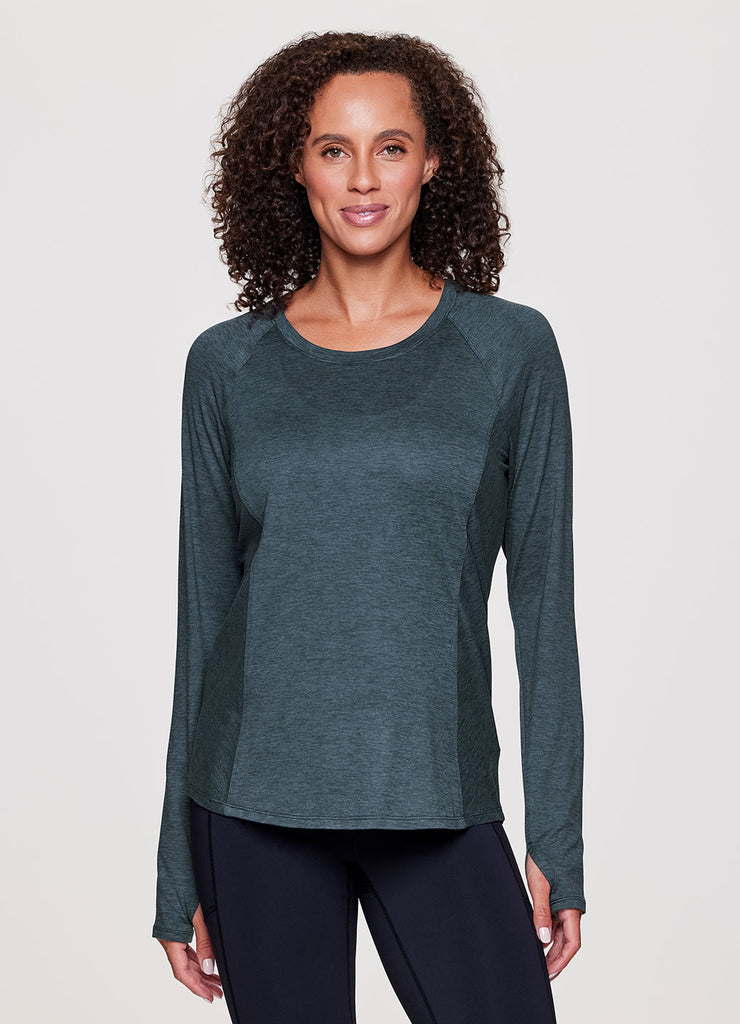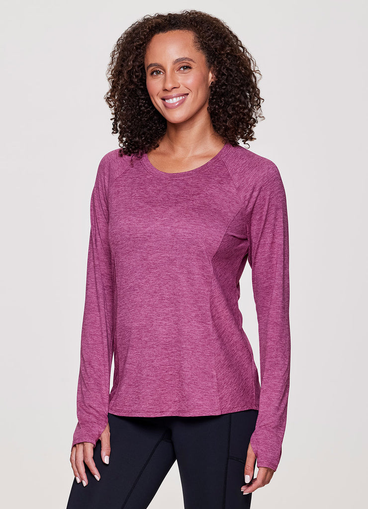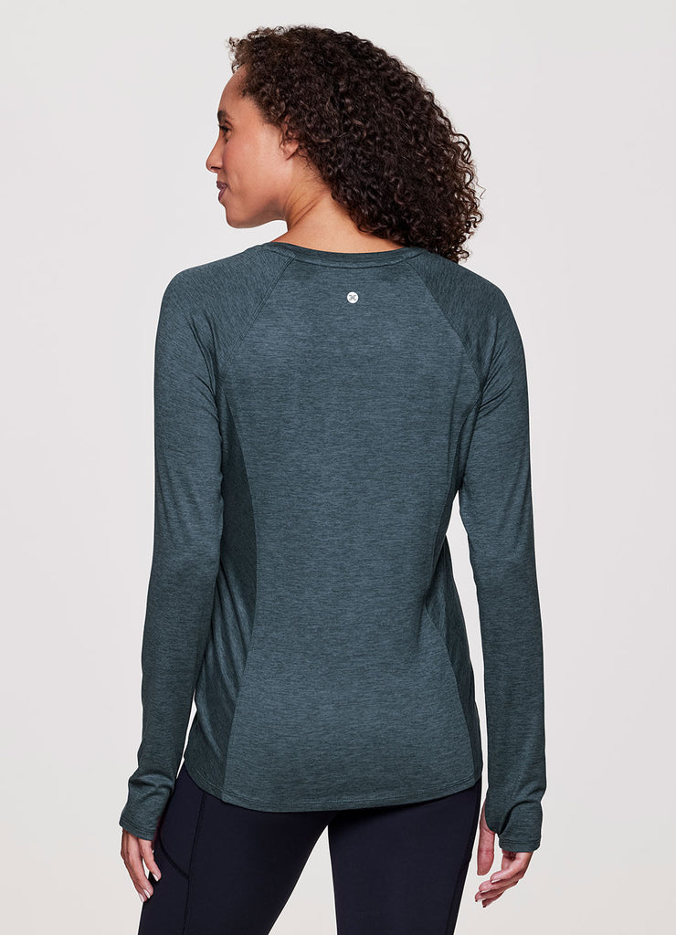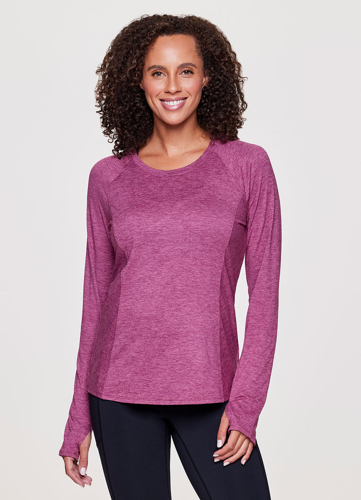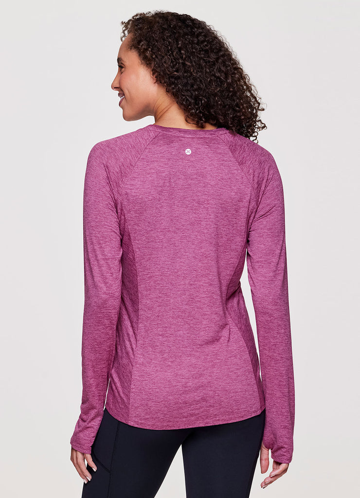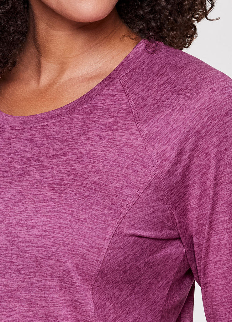 Whether you're heading to the yoga studio, gearing up for a run or going out with friends, just throw on our Stratus Perfect Running Tee and go! The smooth, super soft stretch fabric features a subtle space dye color effect and dries quickly for breathable comfort throughout wear. A classic crewneck design pairs with thumbholes for the perfect combination of functionality and timeless style for a true staple top in your active wardrobe.