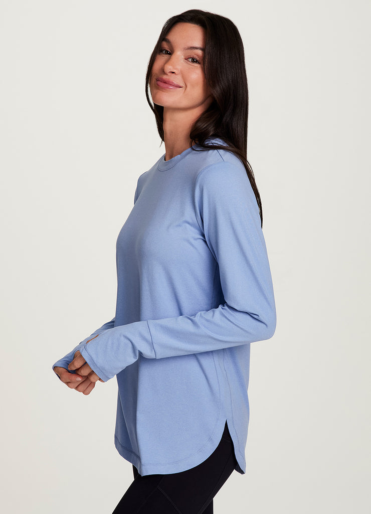 Practice your poses in our Studio Practice Long Sleeve Tunic Tee. With its longer tunic-length design and side slits, this long sleeve t-shirt fits comfortably and provides coverage in the areas you want it most. The upgraded EverydaySoft jersey fabric is ultra soft, stretchy and lightweight while lightly draping your body for a flattering and comfortable fit. Finished with thumbholes to help keep sleeves in place for a full range of distraction-free movement, you can wear this long sleeve top to any workout, hang out and beyond.