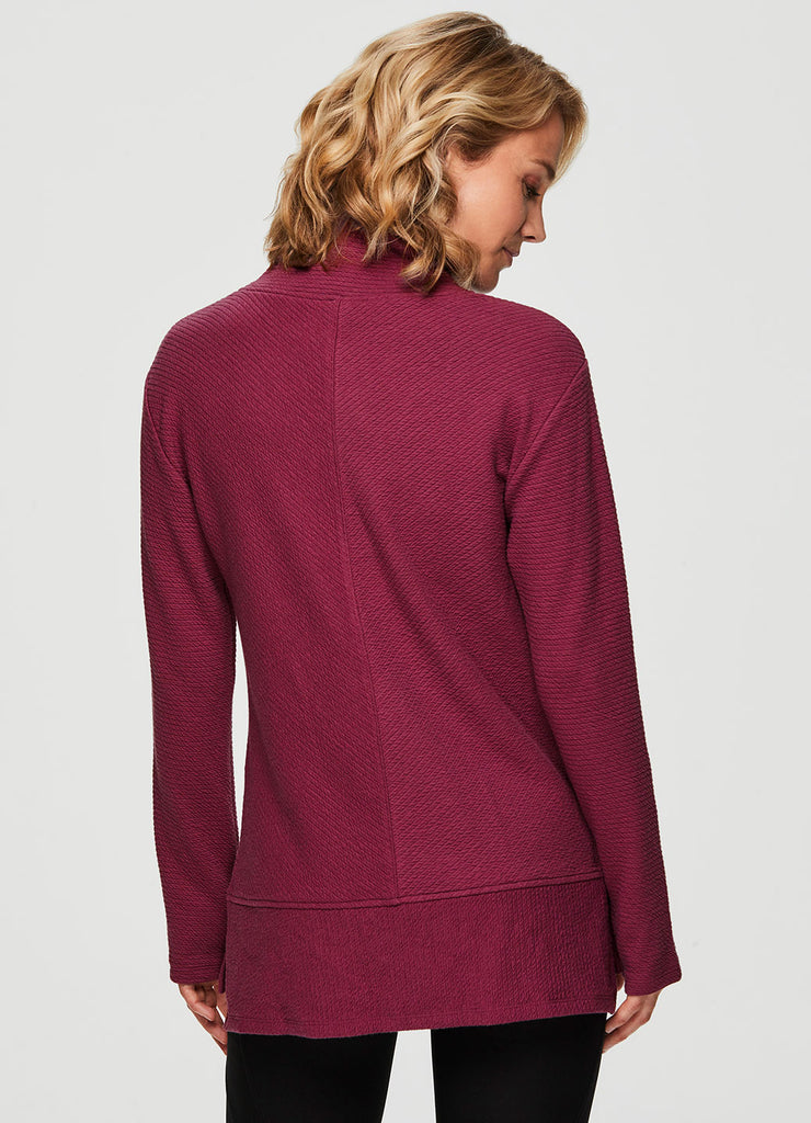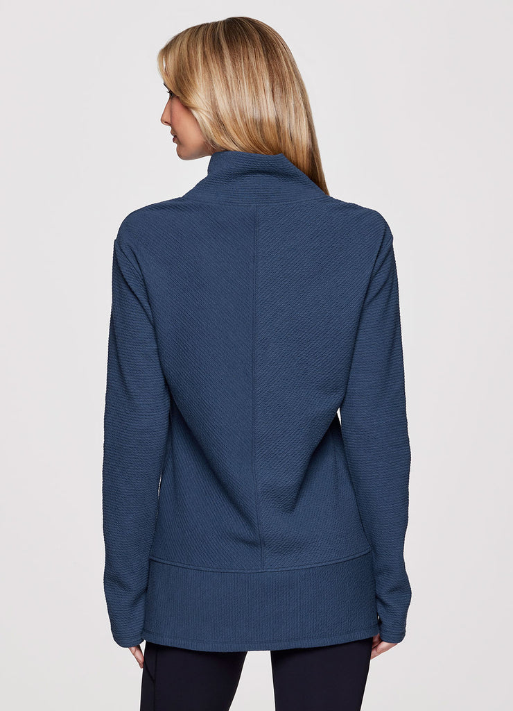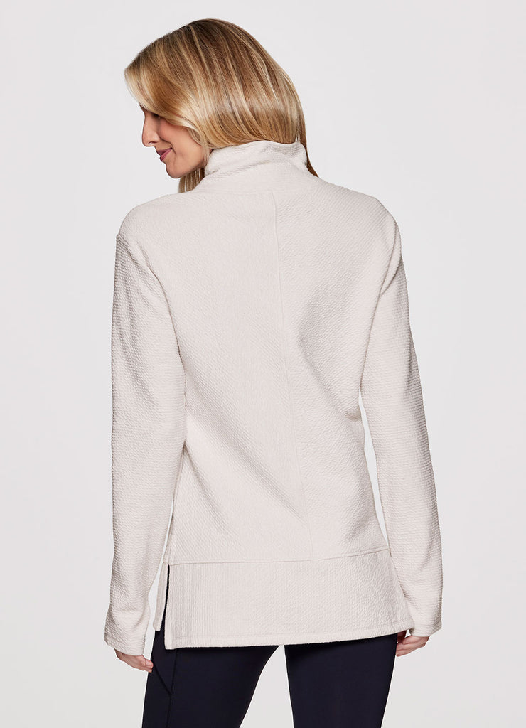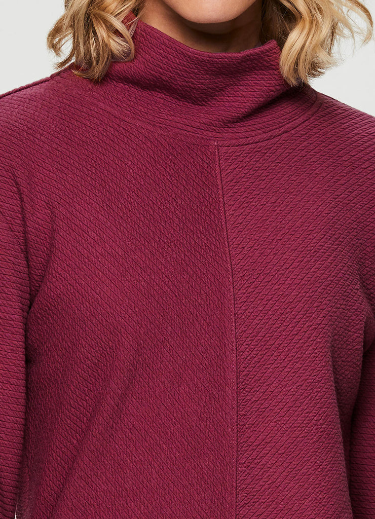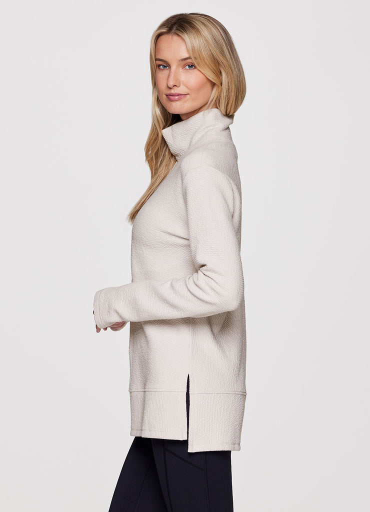 Comfort is a given in the Studio Jacquard Mock Neck Pullover sweatshirt from RBX. Featuring a tunic length for extra coverage and side slits for added comfort and a flattering fit, wear this sweater by itself at the studio or layer up and take it to the streets. With a mock neck design and thumb holes to keep the sleeves in place (or chilly hands), you’ll stay comfy, casual and stylish wherever you go.