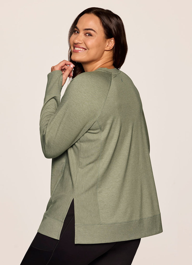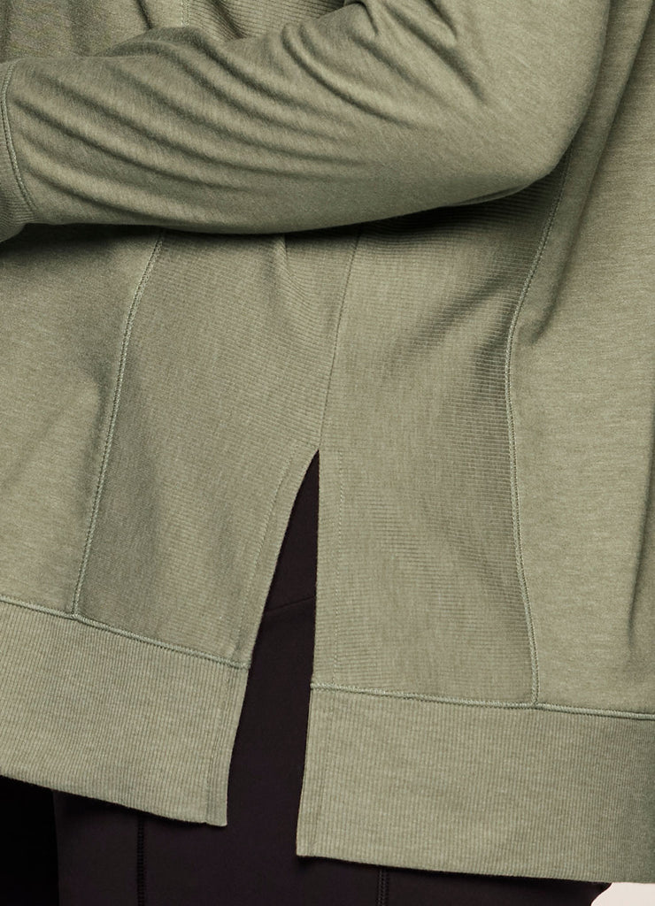 Transitional pullover perfect for yoga and other workouts or for everyday casual wear