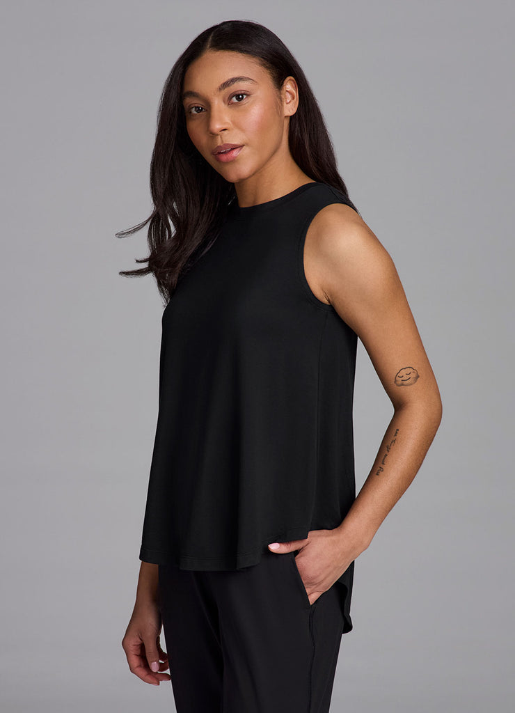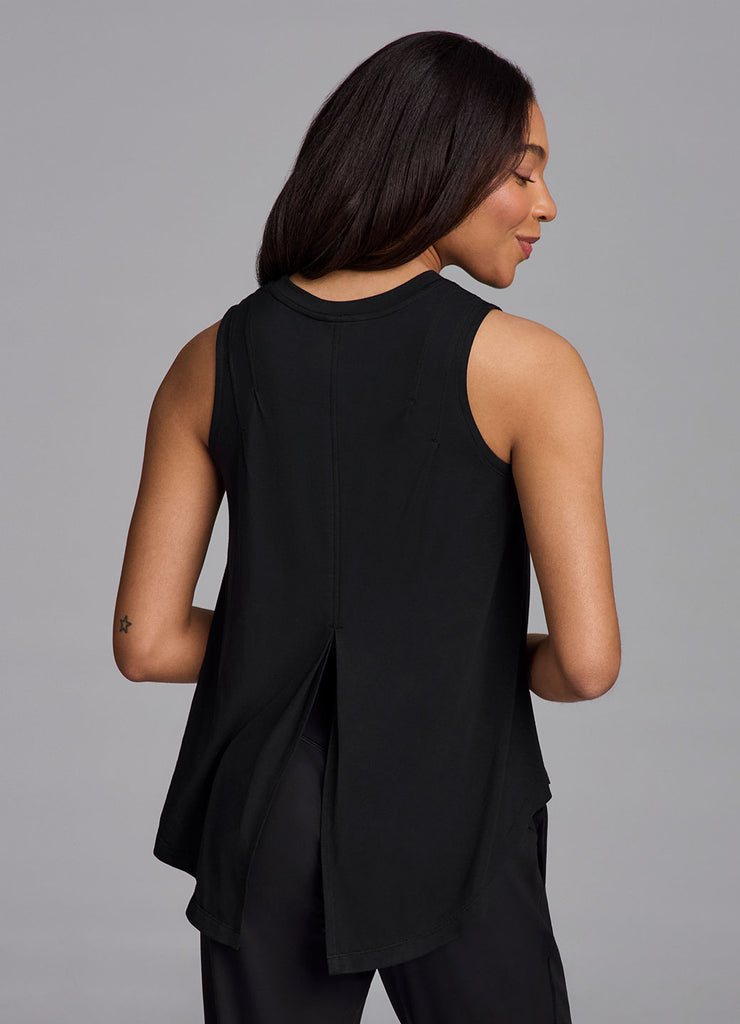 Customize your look in the Courtside Tie Back Tank. Ultra soft, lightweight modal fabric provides optimal comfort, while the adjustable cut away, tie-back design allows you to customize the look, fit and breathability of this multipurpose tank top. Whether you're at the yoga studio, out to lunch or walking your dog, it's a versatile sleeveless crewneck top that's perfect for layering or wearing on its own.