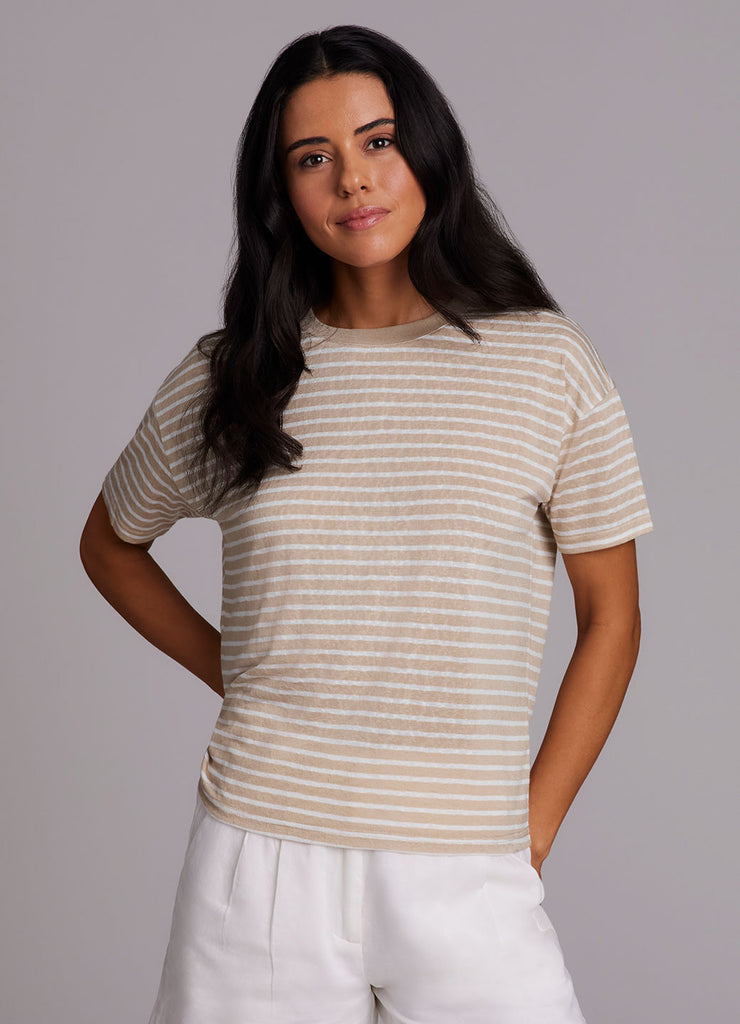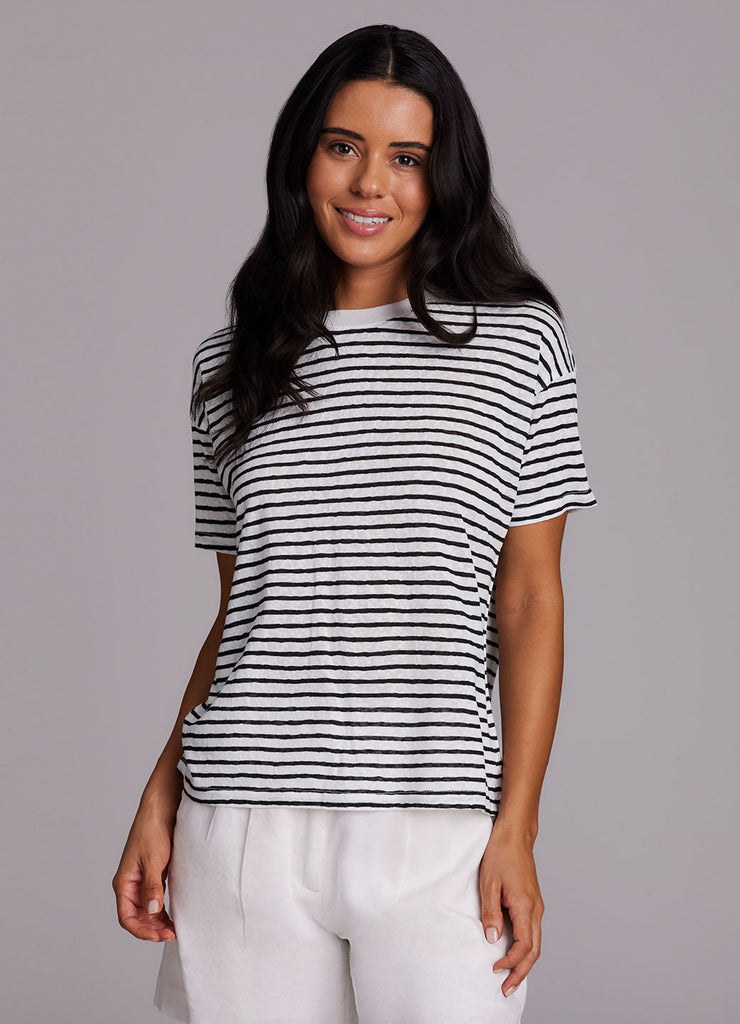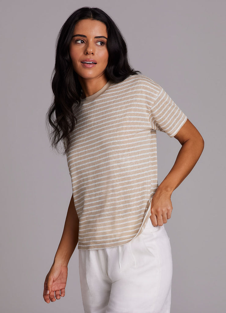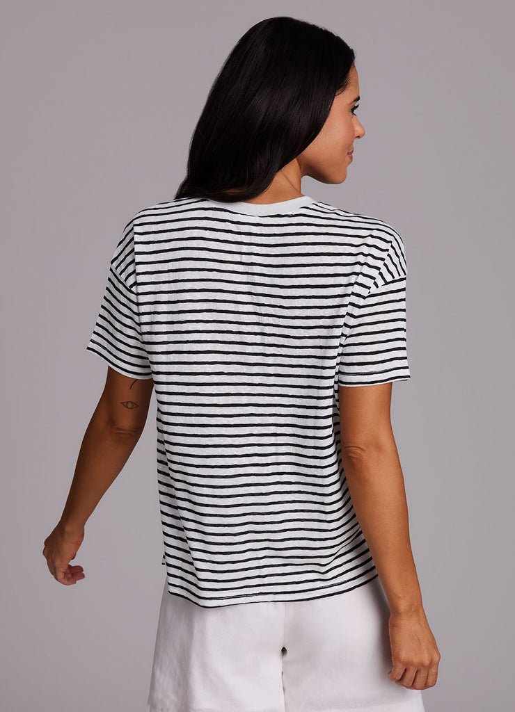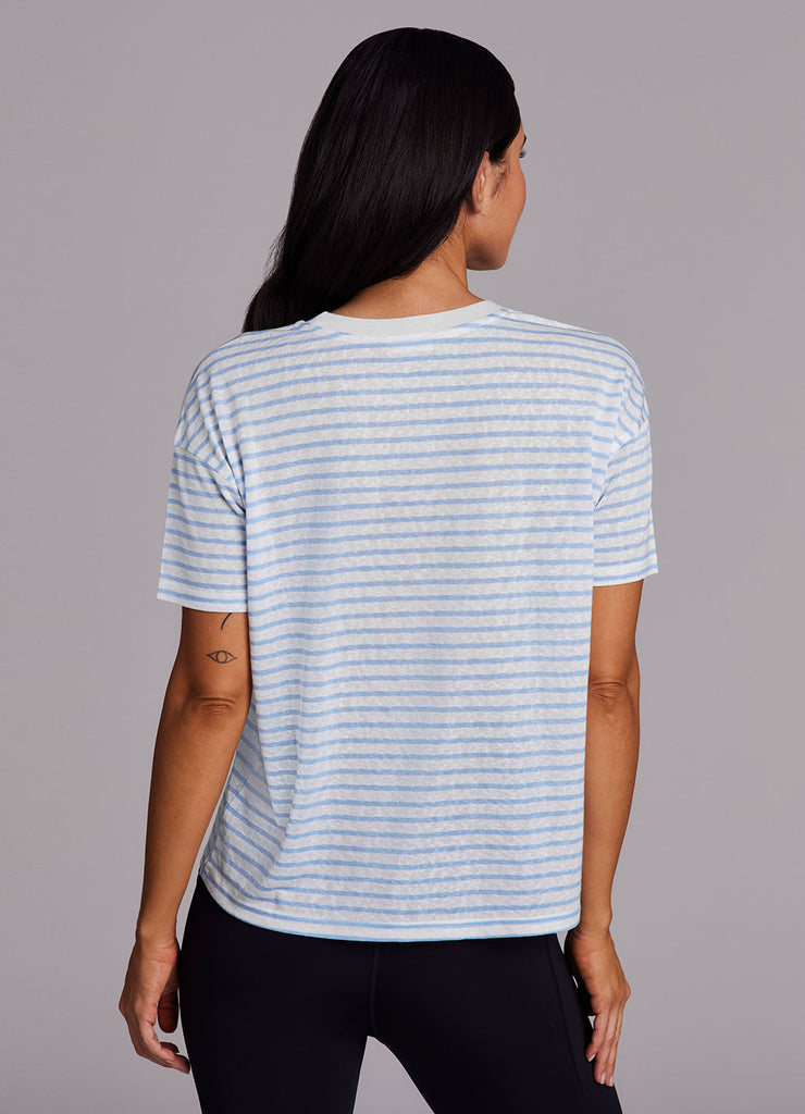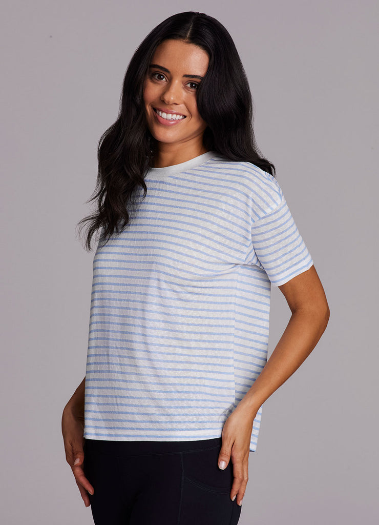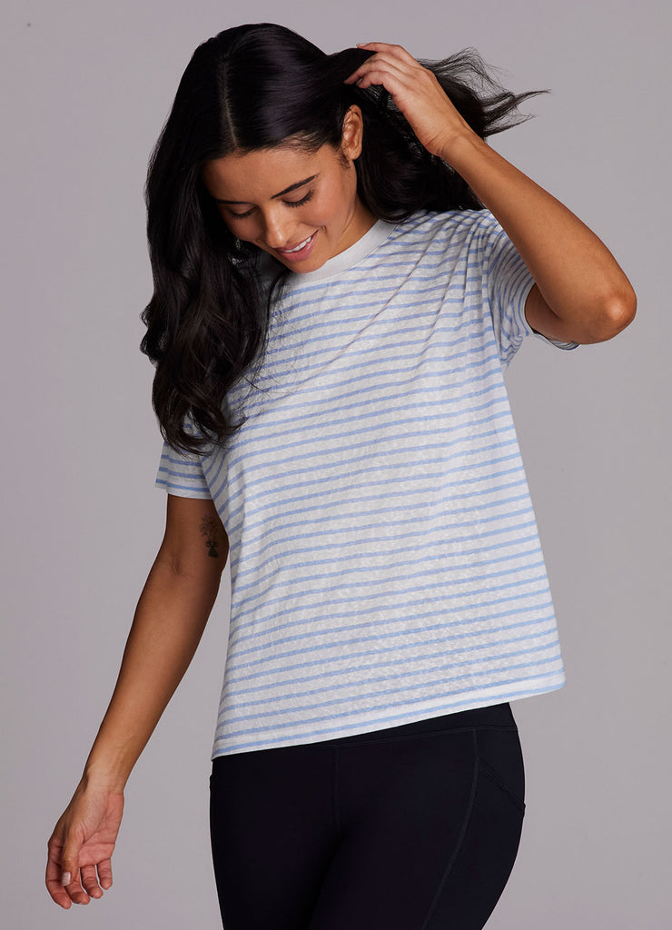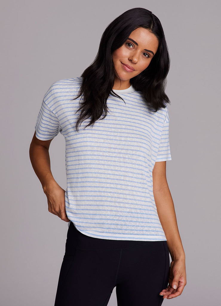 Lightweight fabric with a subtle slub texture combines with a relaxed fit, classic crewneck design and dropped shoulders in our Everyday Striped Tee for an easy-breezy regular length t-shirt you can wear with your favorite yoga leggings or pair of jeans.
