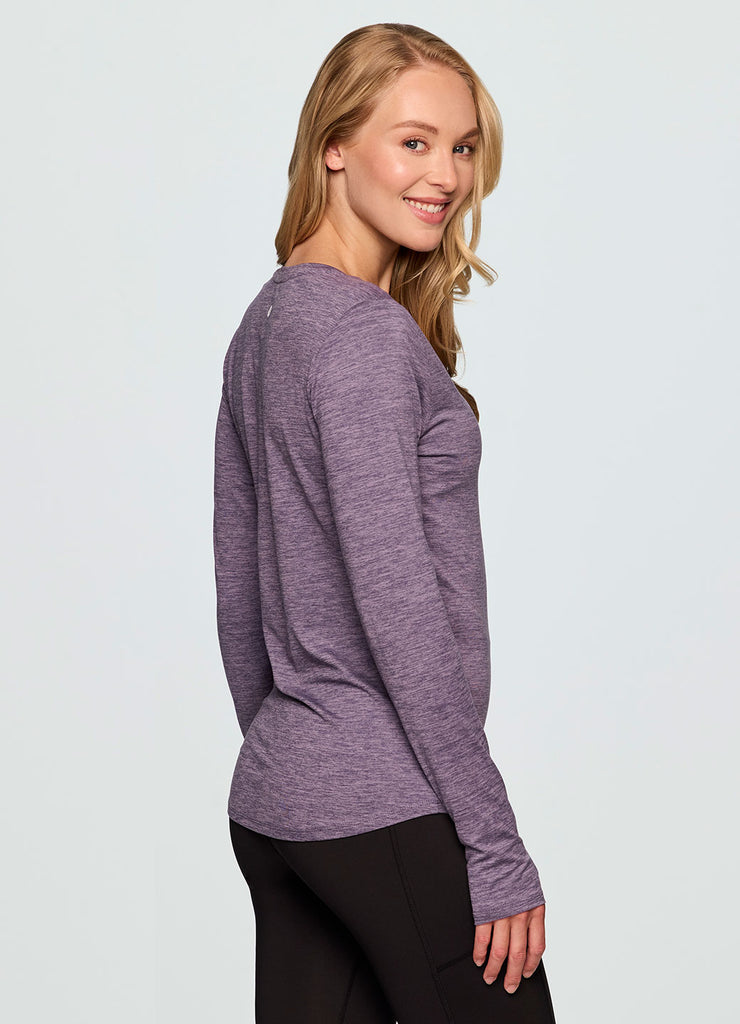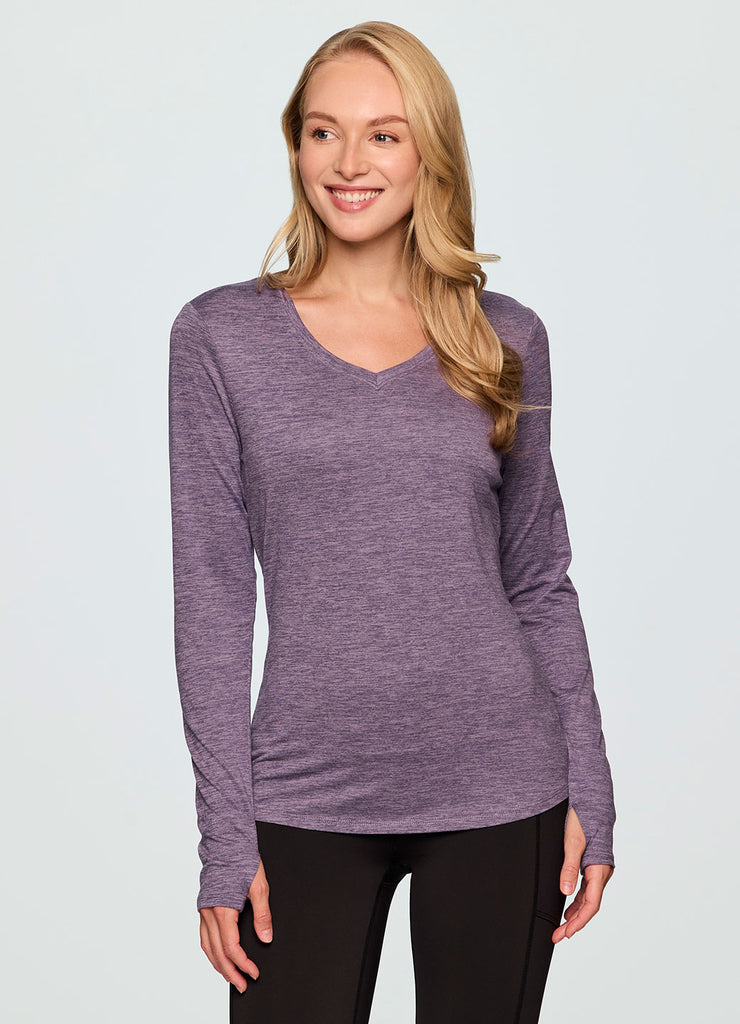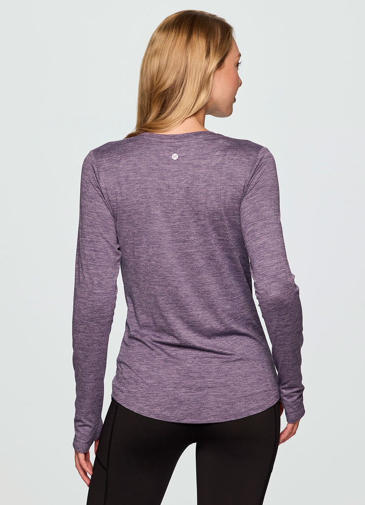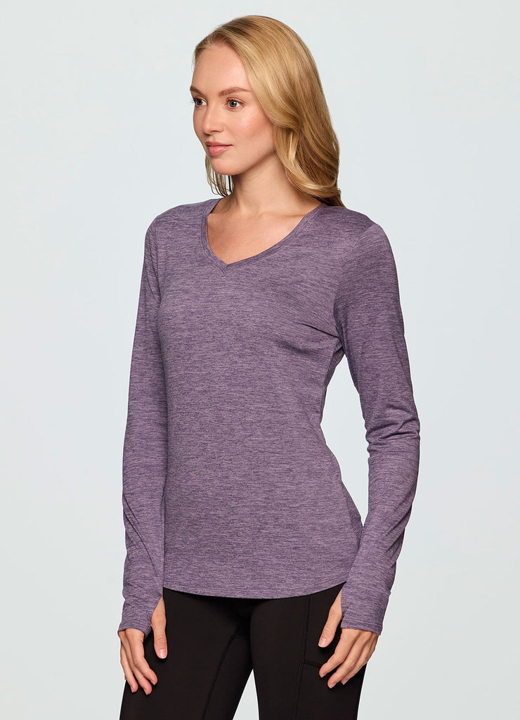 With a flattering body skimming fit that's complemented by a v-neckline and buttery soft fabric, our Stratus Run It Out Tee is the elevated athleisure top you can wear anywhere. Constructed from a lightweight, super soft fabric with a touch of spandex in it, this long sleeve tee is ultra comfortable and retains its shape wear after wear. It features a subtle all-over striated pattern and a hemline that's slightly longer in the back for added coverage. From the yoga studio to lunch with friends, this versatile fitted long sleeve workout shirt will quickly become a favorite in your athleisure wardrobe.
