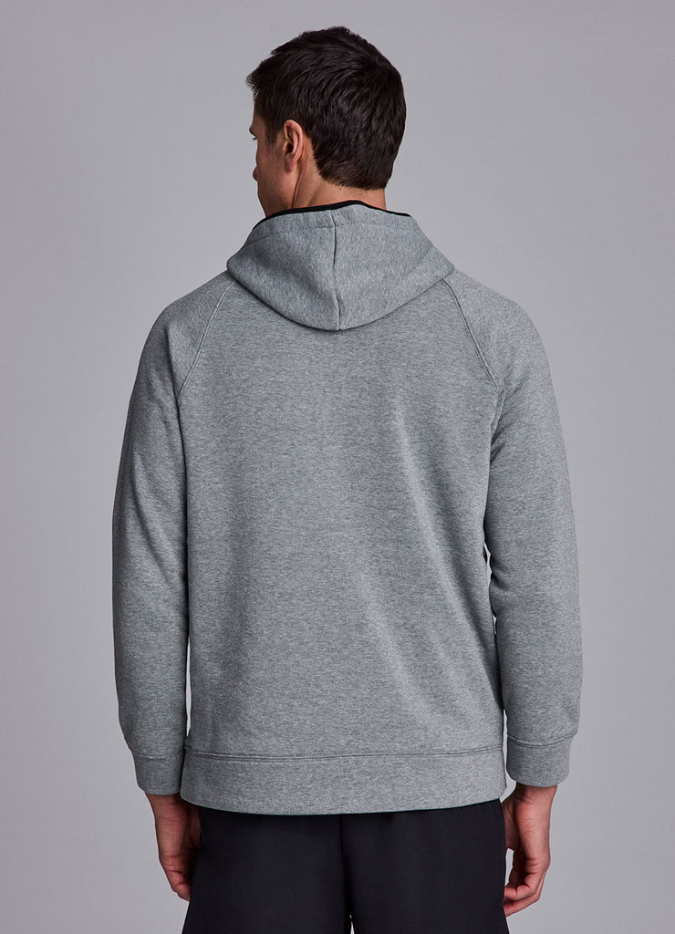 Pair our Prime Fleece Pullover Hoodie with your favorite gym attire and even the cold weather wont be able to stop you from being active. Raglan sleeves provide a full range of motion while the brushed fleece interior traps heat to keep you warm. A zip pocket on the sleeve to store your phone and keys. A kangaroo pocket keeps hands warm for a hassle-free experience