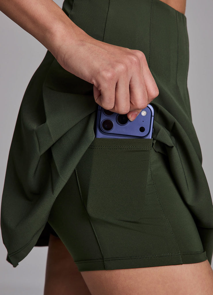 Whether you're hitting the courts, traveling or out to brunch, the Ace It Tennis Skort offers practical style you can wear anywhere. Built-in bike shorts take this active skirt from cute to functional, while quick drying stretch woven outer fabric is lightweight and cooling for optimal comfort. Suitable for sports like tennis, golf and pickleball or for a sporty-chic everyday fashion outfit, this pleated skort provides high performance capabilities without sacrificing style.