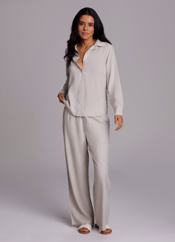 Our Laidback Linen collection blends casual resort wear into your everyday style. The linen drawstring pant is made from lightweight linen blend fabric that never goes out of style and features an easy-breezy wide leg silhouette that can be dressed up or down. Mindfully designed with details like full size side pockets and an adjustable waistband to offer the functionality you're looking for. Complete your outfit with the matching Laidback Linen Button Down Shirt, or pair with any of your favorite tops for a casual-chic summertime look.