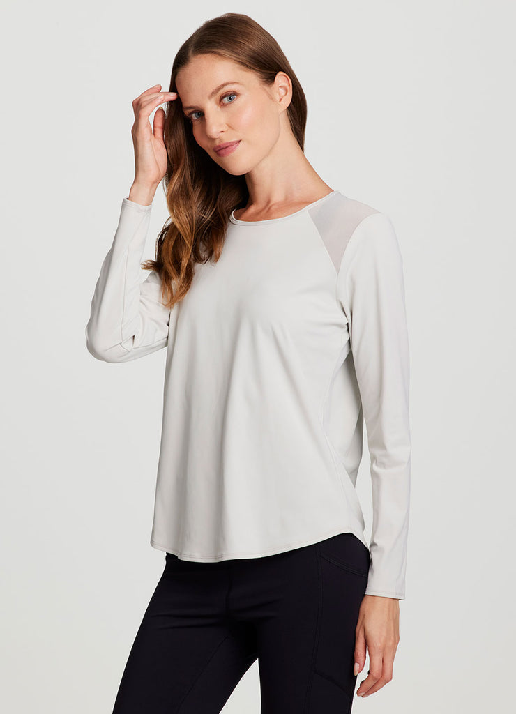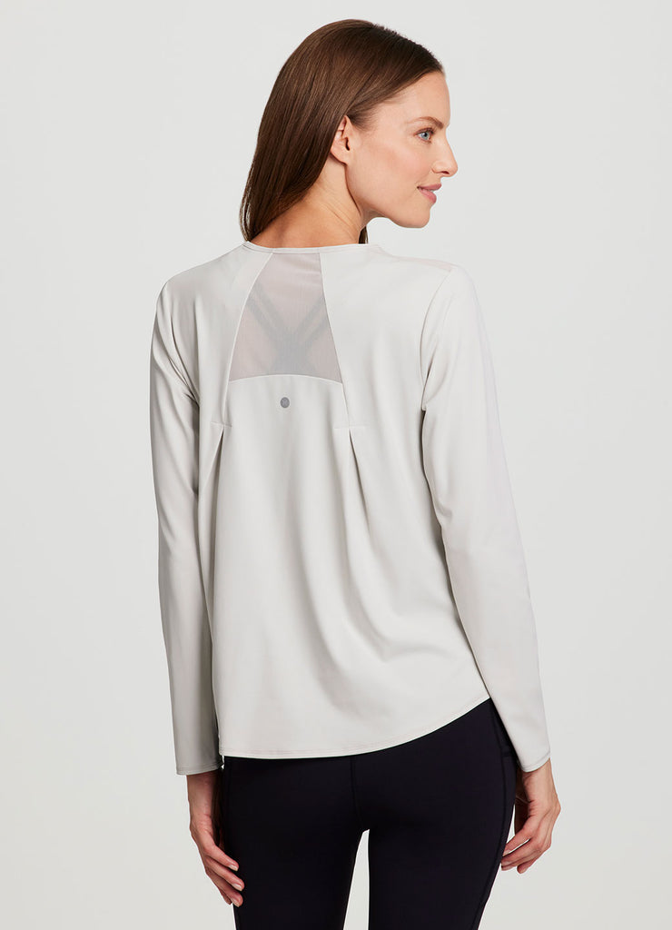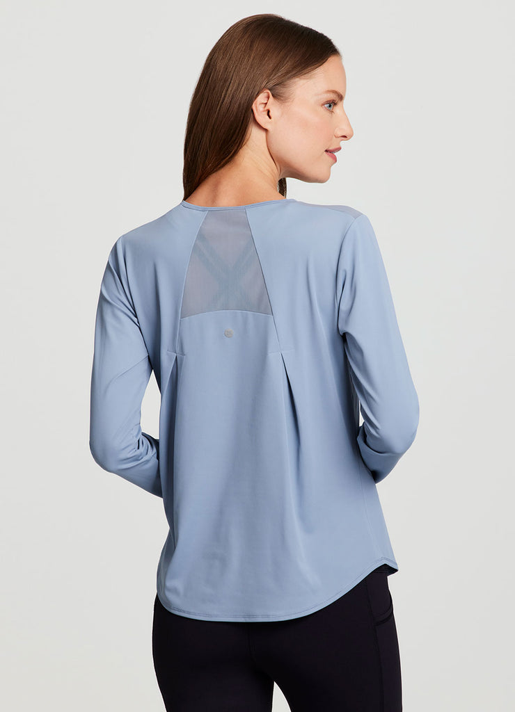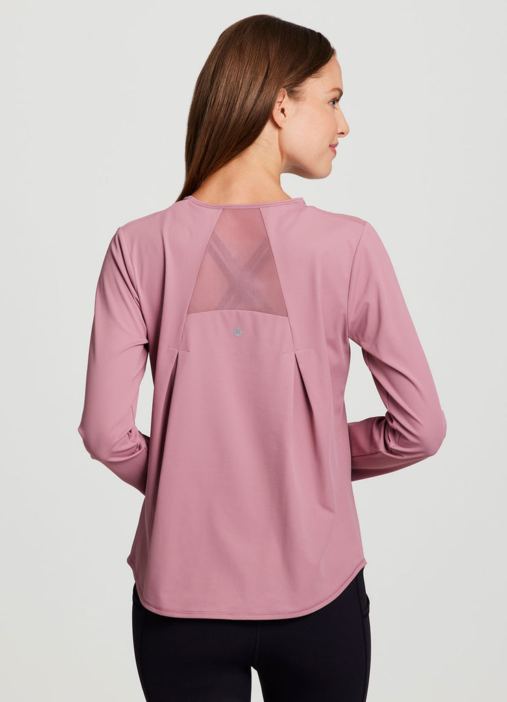 Featuring airy mesh inset panels, quick drying fabric and a versatile design, our Extra Mile Mesh Tee is the perfect transitional workout top. This long sleeve crewneck tee is made from lightweight stretch fabric that's smooth and soft to the touch and features pleat back detail for a stylish touch. Plus with an easy fit and regular length that's slightly longer in back for added coverage, it's perfect to take from studio to street.
