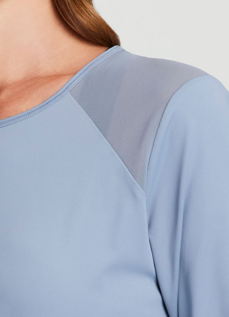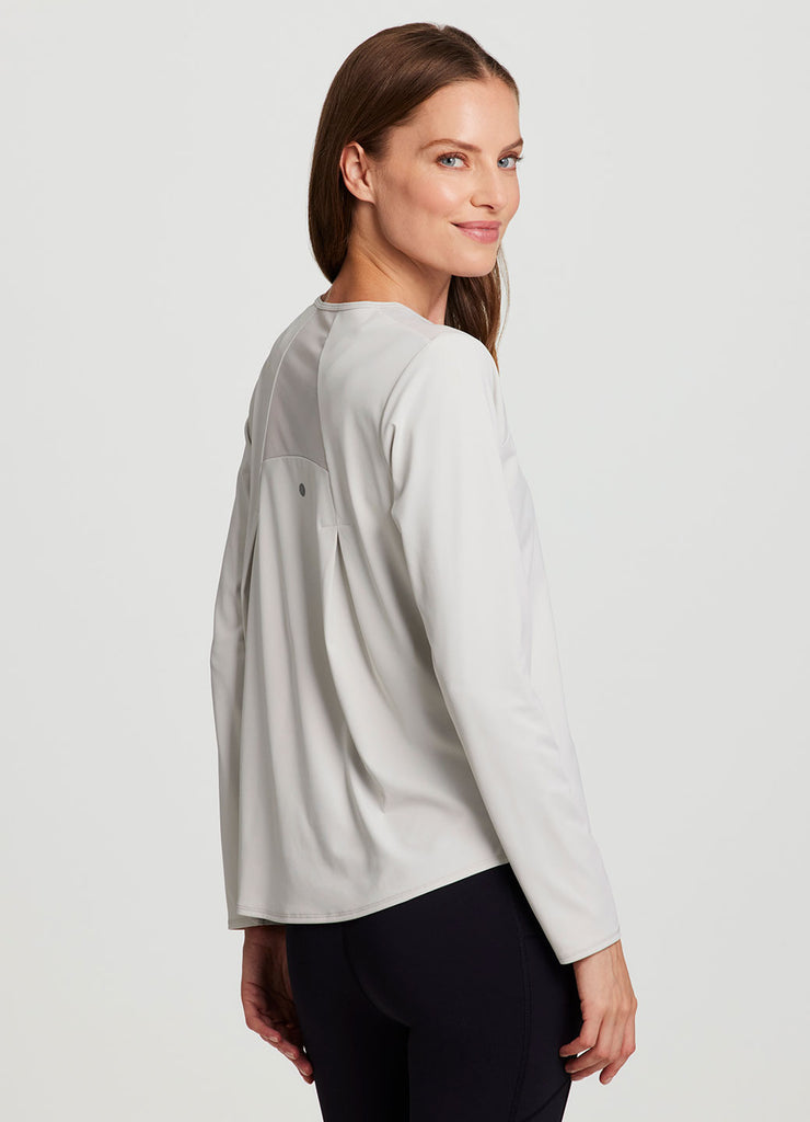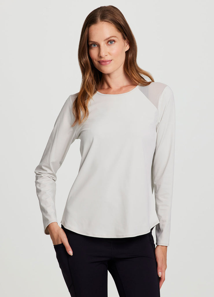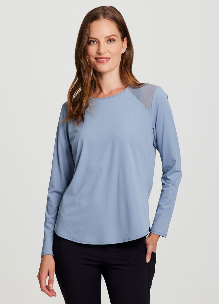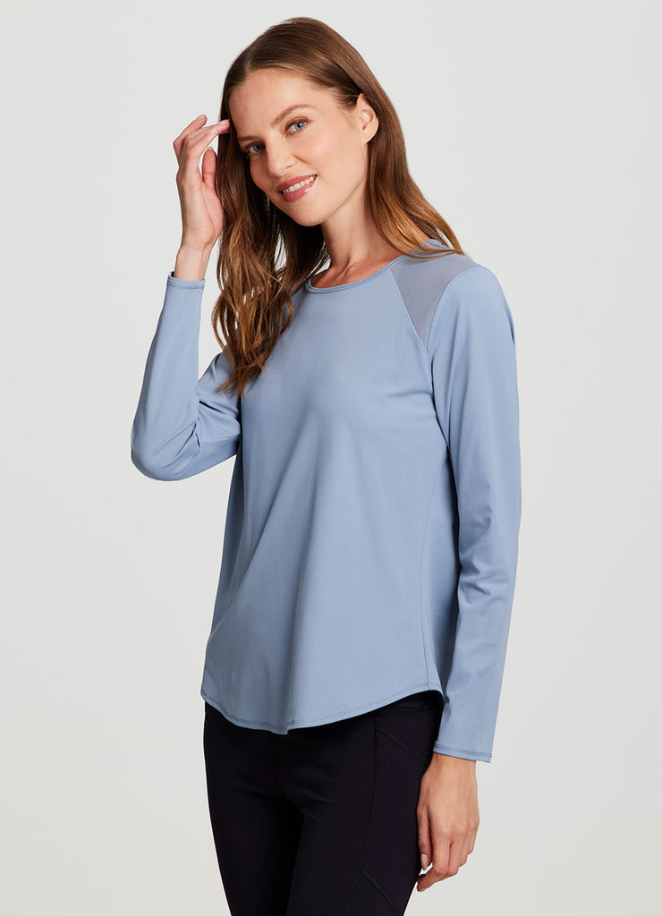 Featuring airy mesh inset panels, quick drying fabric and a versatile design, our Extra Mile Mesh Tee is the perfect transitional workout top. This long sleeve crewneck tee is made from lightweight stretch fabric that's smooth and soft to the touch and features pleat back detail for a stylish touch. Plus with an easy fit and regular length that's slightly longer in back for added coverage, it's perfect to take from studio to street.
