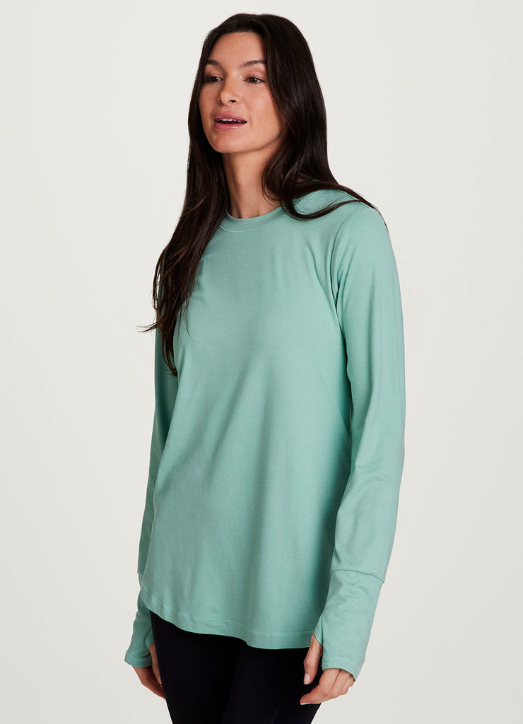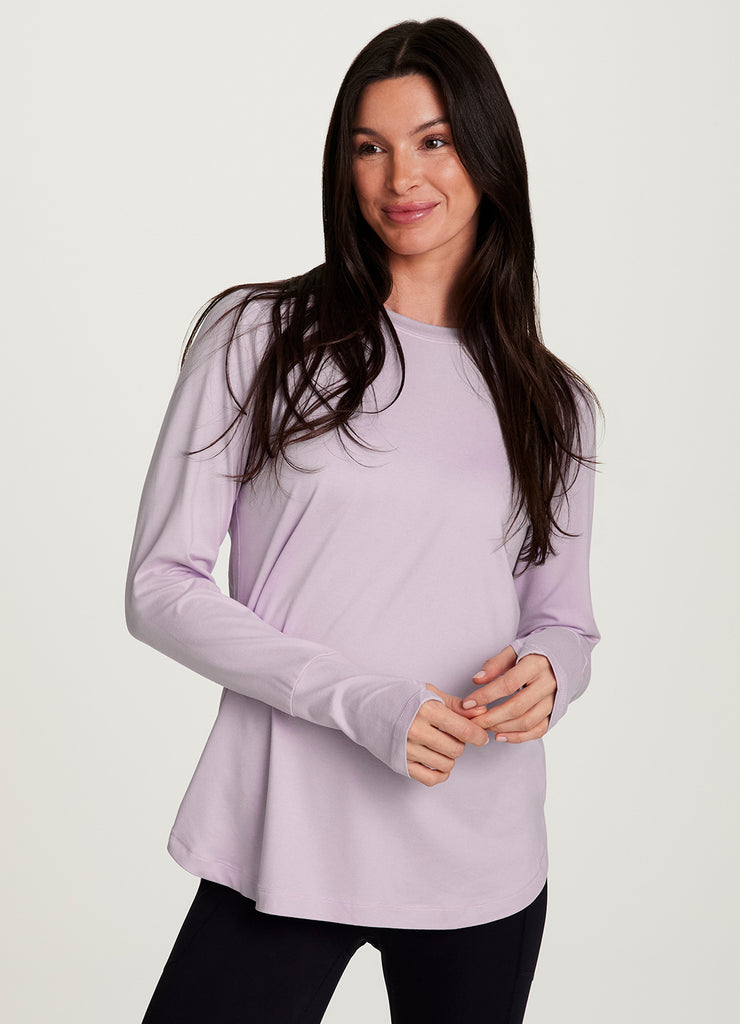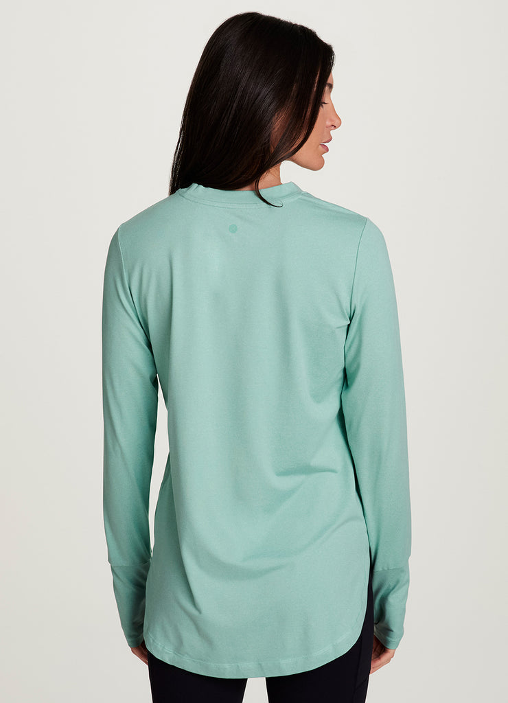 Practice your poses in our Studio Practice Long Sleeve Tunic Tee. With its longer tunic-length design and side slits, this long sleeve t-shirt fits comfortably and provides coverage in the areas you want it most. The upgraded EverydaySoft jersey fabric is ultra soft, stretchy and lightweight while lightly draping your body for a flattering and comfortable fit. Finished with thumbholes to help keep sleeves in place for a full range of distraction-free movement, you can wear this long sleeve top to any workout, hang out and beyond.