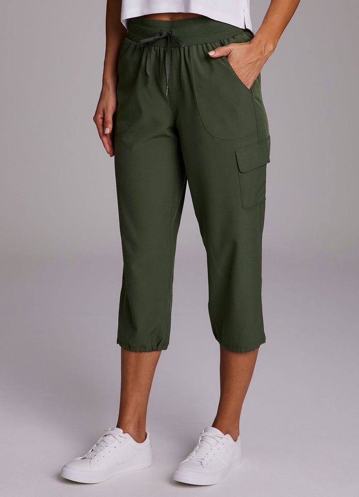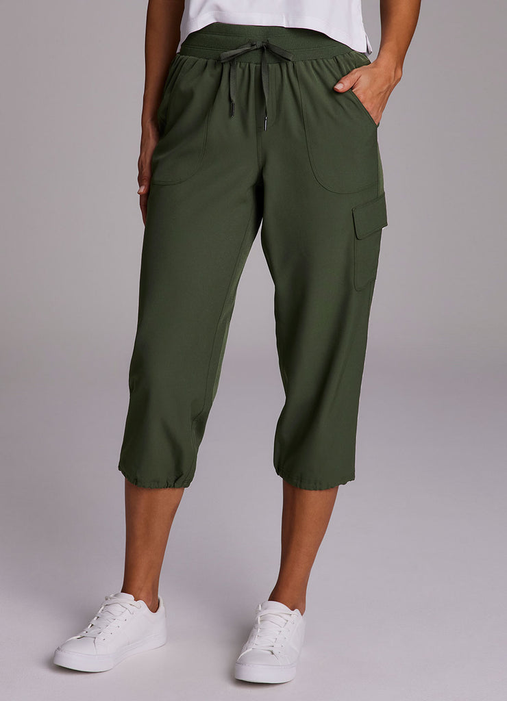 The Prime Anywhere Cargo Capri is a relaxed fit lightweight stretch woven pant that is an essential part of an athleisure wardrobe. Lightweight stretch woven fabric allows you to move without restriction, while moisture wicking properties help it to dry quickly to keep you dry and comfortable. Sizable side pockets and additional small cargo pocket provide convenient on-the-go storage, and an elastic waistband and drawstrings at the waist and leg openings allow for a more customized fit. These cargo capri pants are an on-the-go essential. You'll want to wear them everywhere! Available in extended sizes XS-3X. *Please note these capris have a looser, relaxed fit when choosing a size.