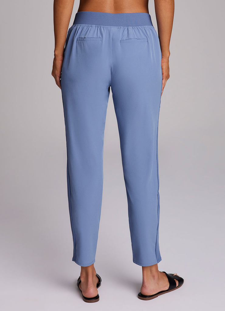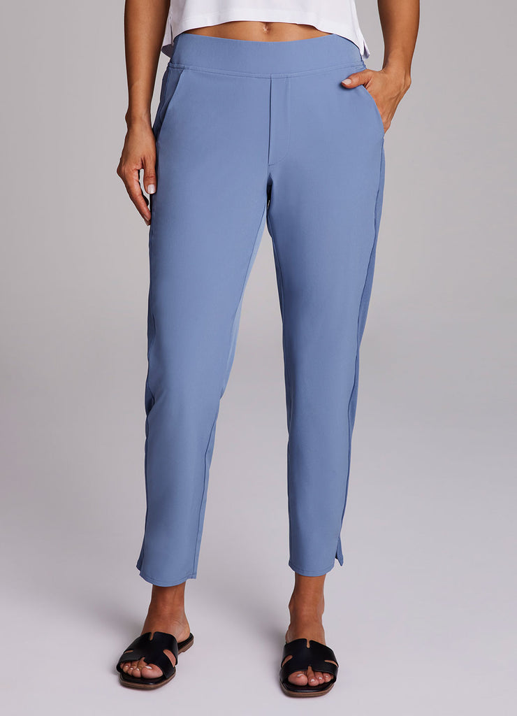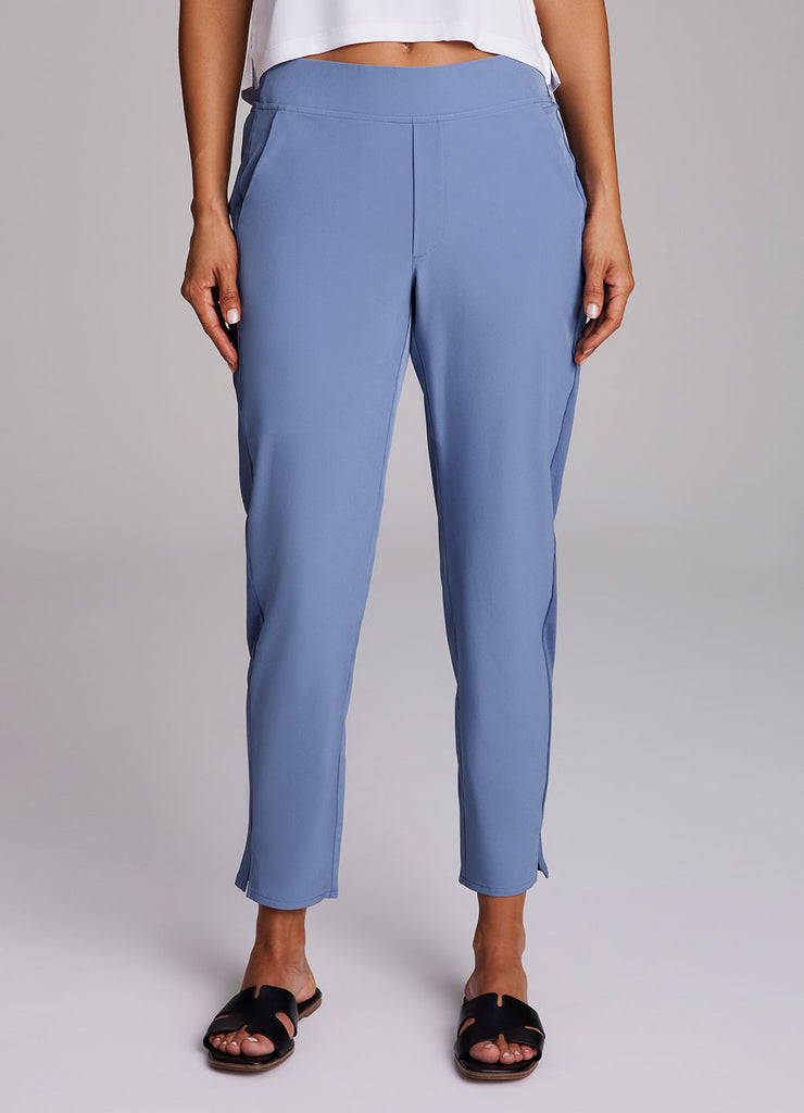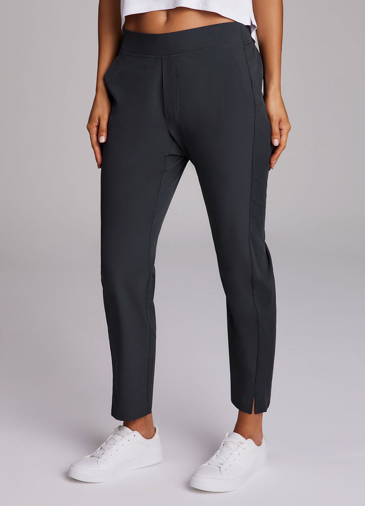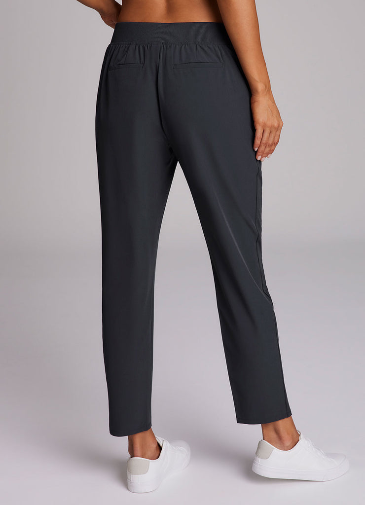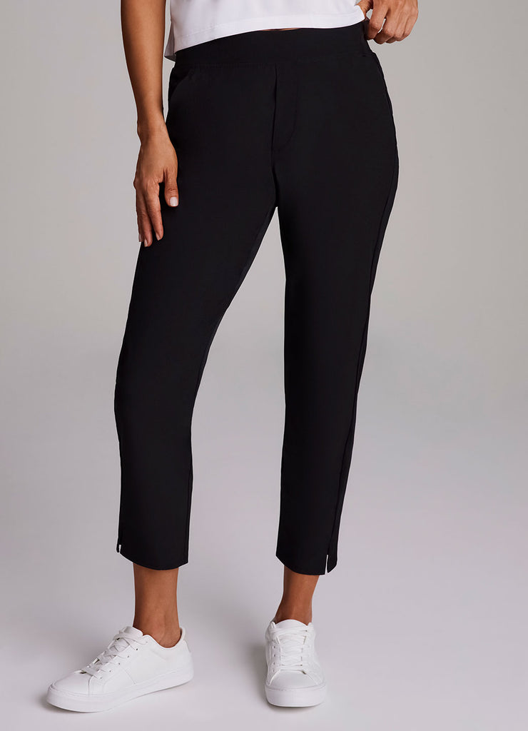Perfect for everyday wear, traveling, workouts and more, you'll love the Everyday Ribbed Ankle Pant. These versatile ankle length pants are constructed from our breathable, quick drying stretch woven fabric and have a ribbed waistband and side leg detailing. The flat elastic waistband provides both a secure and flattering fit, and sizable side pockets conveniently hold your cell phone and other necessities. Complete with slits at the ankles, faux back pockets and front fly detail, these fashionable pants are a great addition to any wardrobe.