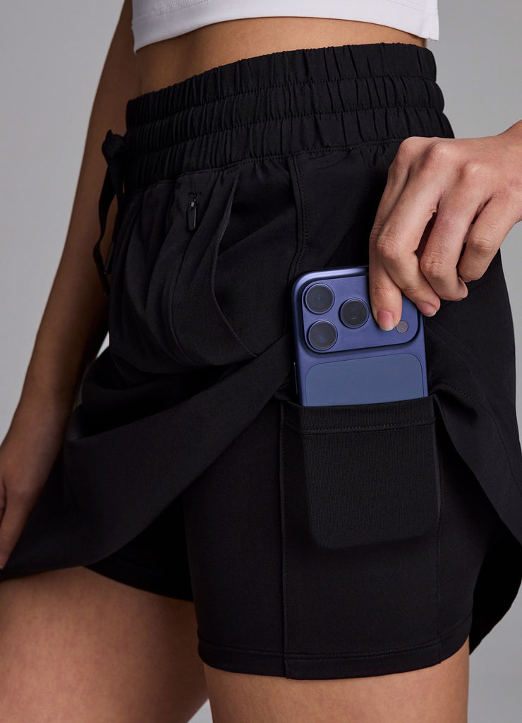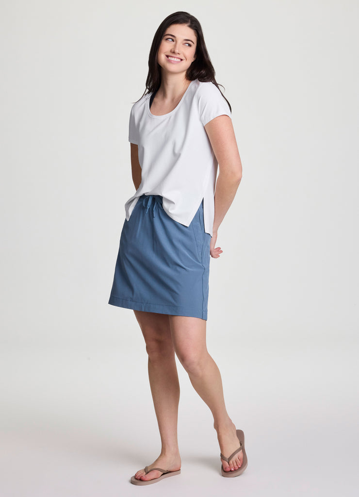 Take it from the pickleball courts to brunch with friends in our Catch Me Courtside 19" Skort. Lightweight stretch woven fabric dries quickly and features attached jersey biker shorts underneath for added coverage and support. An elastic waistband with adjustable drawstring ensures a comfortable and secure fit, while full sized side pockets and discreet zipper pockets securely hold your essentials to ensure a hands-free experience during any activity. From dog walks to airport travels, this versatile skort works for it all!