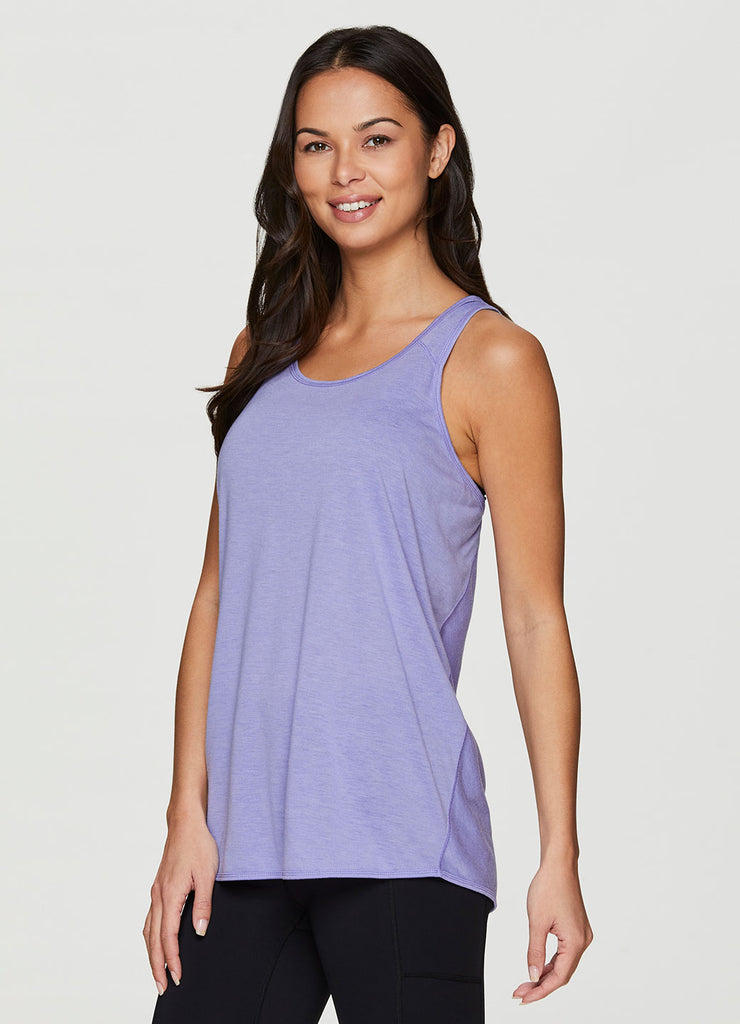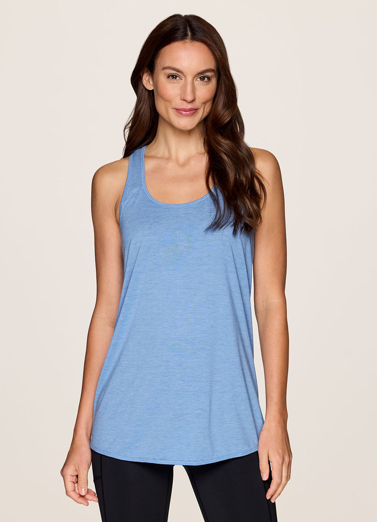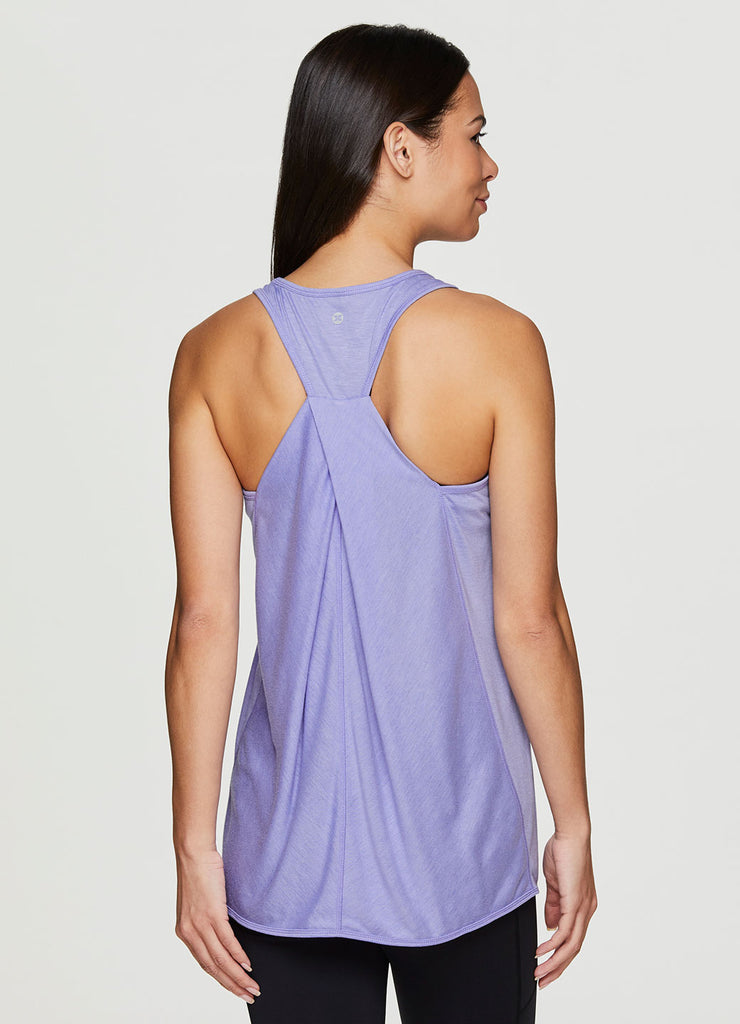 Go beyond the gym in the Prime Relaxed Twist Back Tank Top. This top has a longer length and relaxed fit for extra coverage and comfort. A feminine scoop neckline is paired with a racer back design so that you can power through your workout easily with no restrictions. Constructed from lightweight, soft drapey fabric, this tank is the perfect stand alone piece for any workout or a great layer to throw on while running errands.