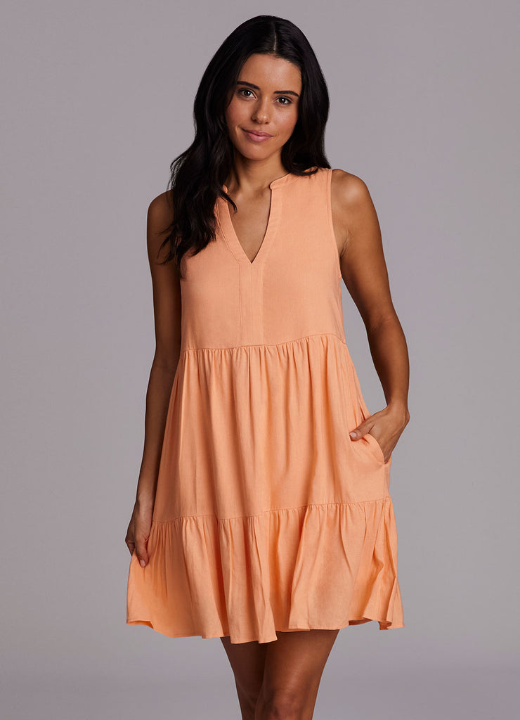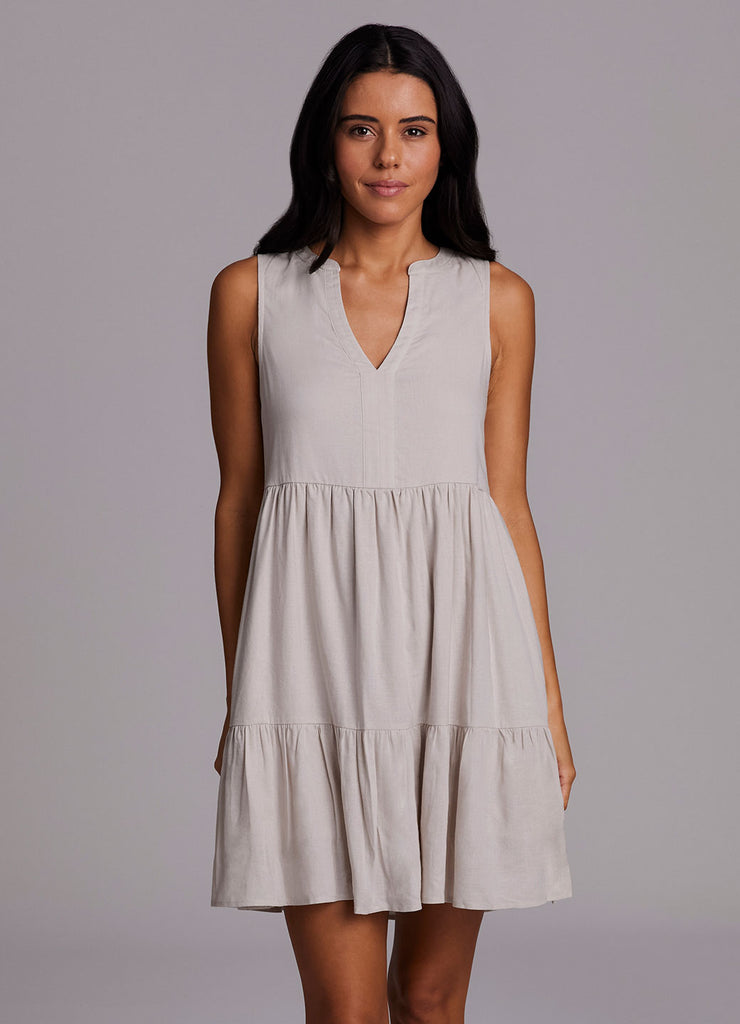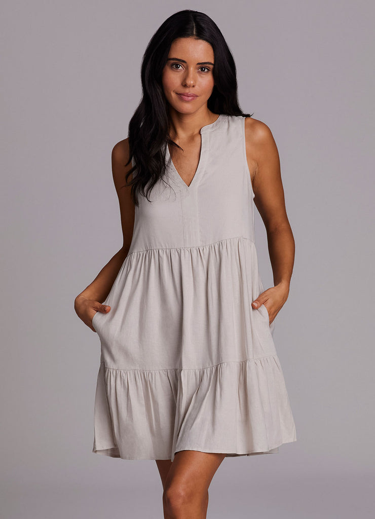 Our Laidback Linen collection blends casual resort wear into your everyday style. The wear-anywhere Laidback Linen Popover Dress features a layered linen blend fabric that combines with a relaxed fit, flattering notch neckline and tiered skirt for versatile wear at the beach, airport or brunch with friends, while full sized side pockets offer convenience and function. With its timeless linen fabric and easy-to-style silhouette, it's a closet staple you'll reach for year after year.